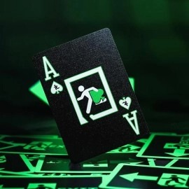 El verde de las propias cartas es aún más llamativo: un tono neón vívido que resplandece intensamente bajo la luz ultravioleta.